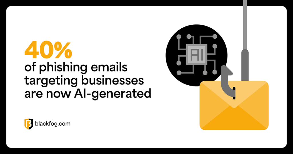 • Social engineering: AI is increasingly being used to trick employees into handing over data or passwords. According to VIPRE, 40 percent of phishing emails targeting businesses are now AI-generated, while the Harvard Business Review notes 60 percent of recipients fall victim to these highly-convincing tactics. These can even be used to create deepfake audio or video to impersonate executives or other contacts.